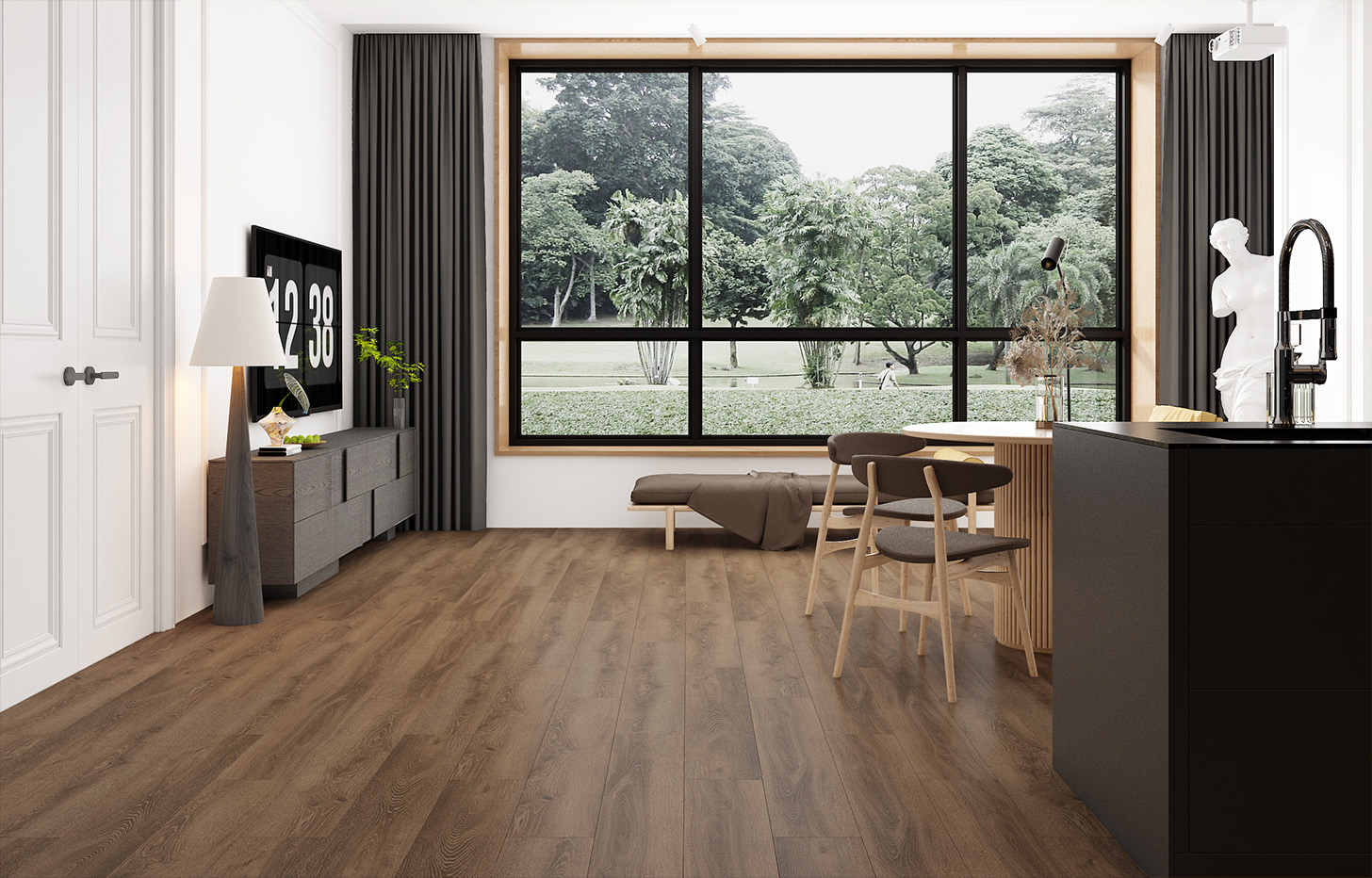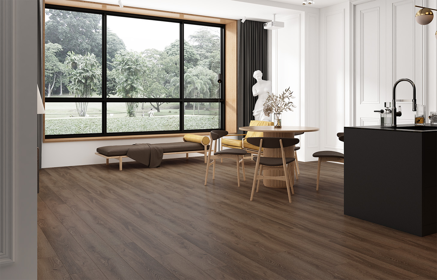 MSPC ламинат Дуб Браунфилд — великолепный пример того, как должна выглядеть массивная доска из тонированного дуба натуральной селекции. Живой древесный рисунок, годичные кольца, трещинки и глазки делают Дуб Браунфилд максимально аутентичным и выразительным. Не забудьте про изящную 4-стороннюю V-образную фаску и medium формат 1120*141 мм и смело делайте выбор в пользу этого дизайна, если вам нравятся благородные коричневые оттенки. Найти что-то похожее по визуальной красоте, дизайну, качеству и надежности вам будет очень сложно.
